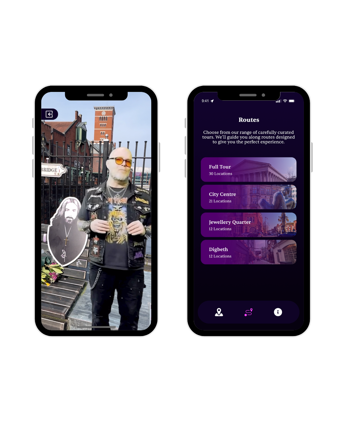 The project is driven by Jez Collins from Birmingham Music Archive, bringing his deep knowledge of the city’s rich musical heritage and cultural identity and experience leading walking tours and merging it with BOM’s talented Immersive Studio team. We knew we wanted to incorporate Jez into the app and include him in the AR content.